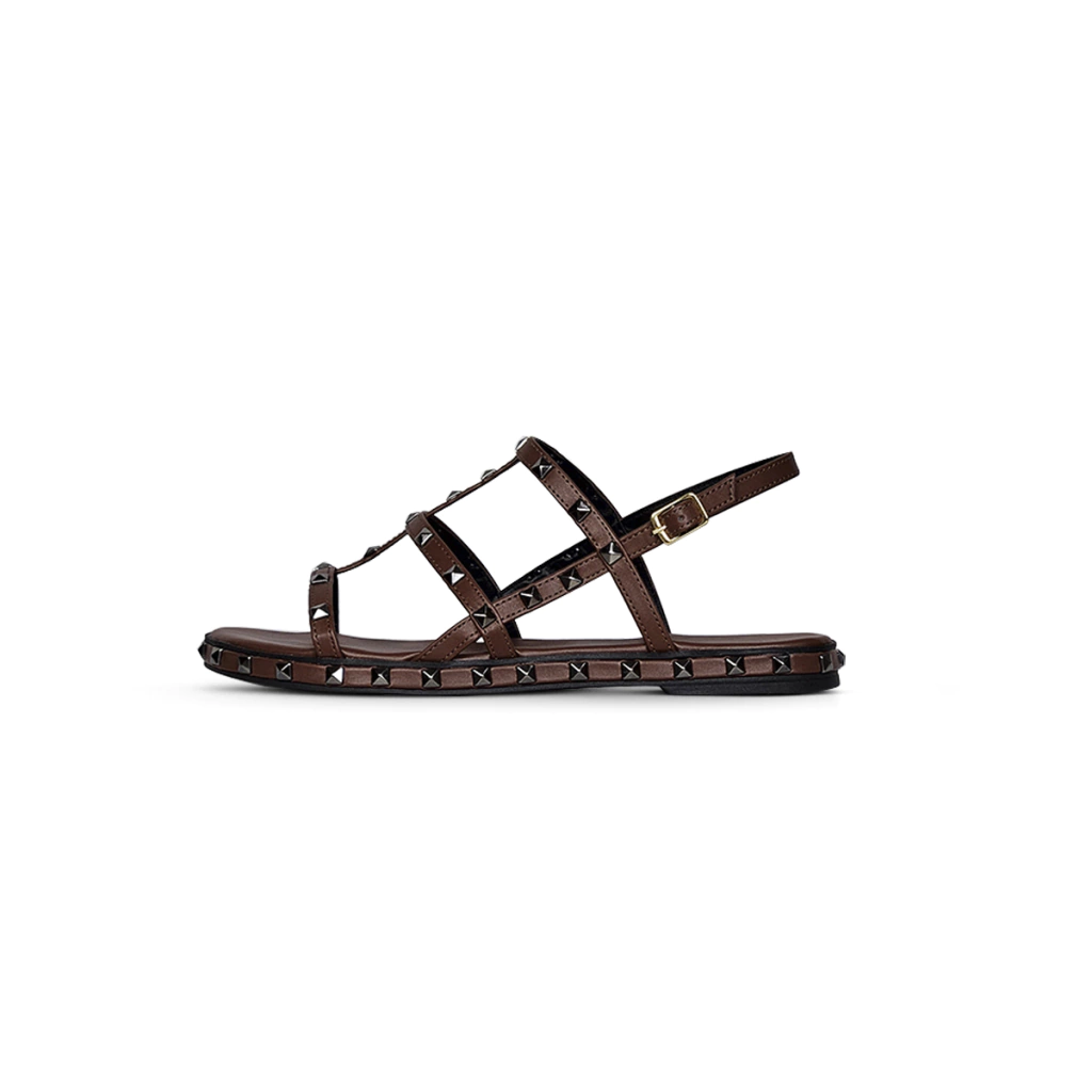Quais são os diferenciais da Rasteira Feminina Com Pirâmides Marrom?