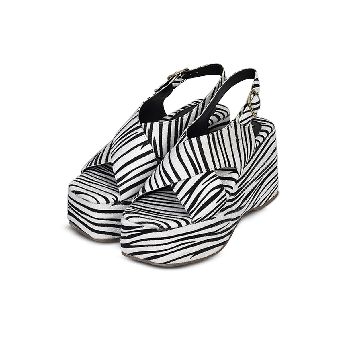 A Sandália Anabela Plataforma Feminina Zebra é o equilíbrio perfeito entre elegância e ousadia, com o charme irresistível do animal print.