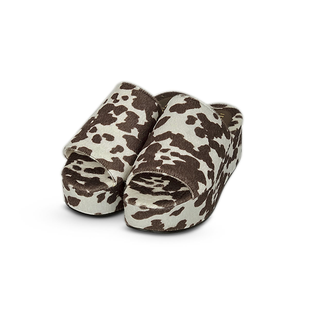 Com estampa de vaca em tons terrosos, ele traz personalidade e autenticidade para qualquer produção. A plataforma super leve oferece conforto o dia todo, enquanto o ajuste com elástico garante praticidade e um encaixe firme e confortável.